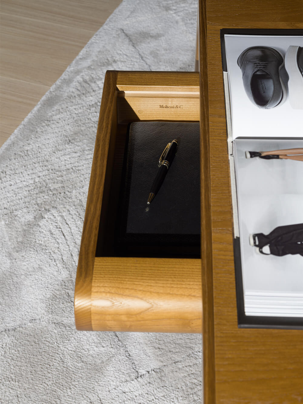 다른 모든 헤리티지 컬렉션 프로젝트와 마찬가지로 도면, 사진, 시대 자료에 대한 세심한 연구를 통해 D.847.1 책상은 모든 세부 사항을 충실하게 재현할 수 있었습니다. 견고한 목재 가공에 있어 높은 수준의 장인 정신으로 이 걸작은 빛을 받을 수 있게 되었습니다.