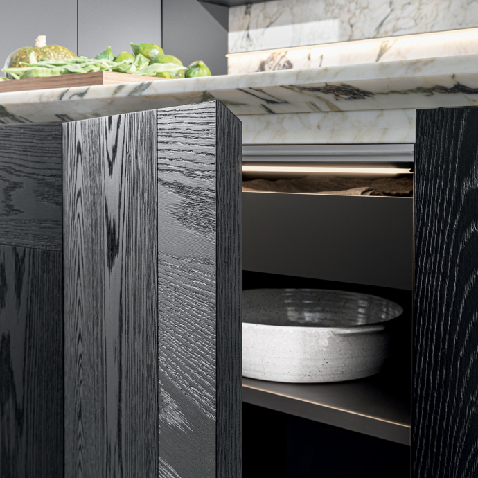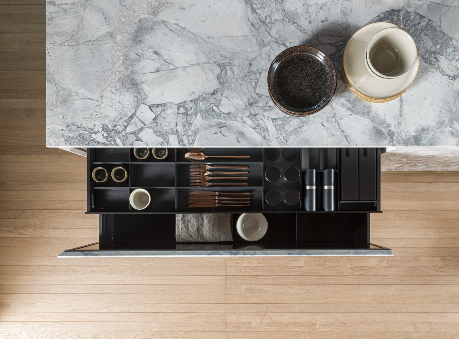 인터섹션 주방은 천연 암석을 소재로 선택해 자연이 선사하는 독특한 특성을 활용합니다. 또, 최대한의 기능성을 갖춘 혁신적인 기술을 적용해 편리함을 높여줍니다. 천연 석판은 정밀도 높은 공정을 거치면서 가벼워지고 가정용으로 사용하기 적합해집니다.