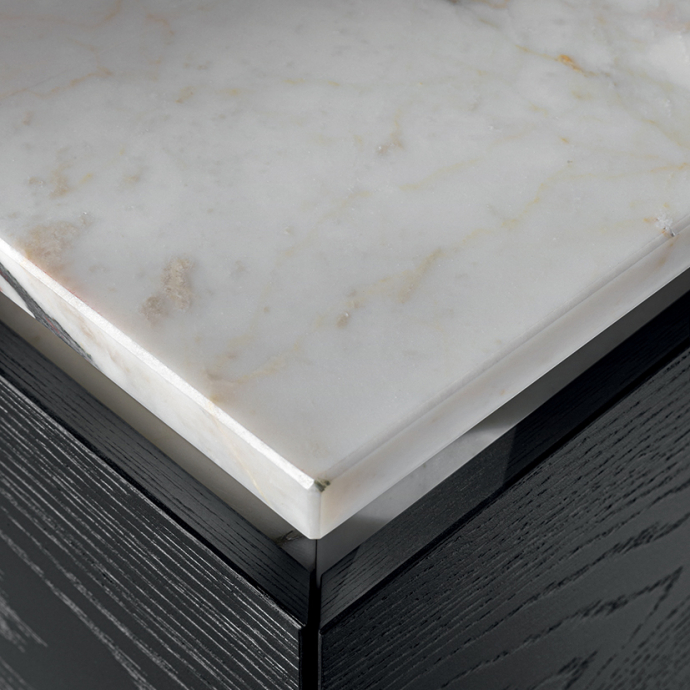 도어의 기하학적인 장식은 나무의 자연스러움을 부각시키고 래커 처리된 표면의 유연함을 드러내는 한편, 건축미를 연상시키는 디자인을 뽐내기도 합니다. 빛과 그림자가 만들어내는 표면의 패턴과 견고한 상판은 매끈한 표면 또는 마치 조각과 같은 모습 등으로 커스터마이징이 가능합니다.