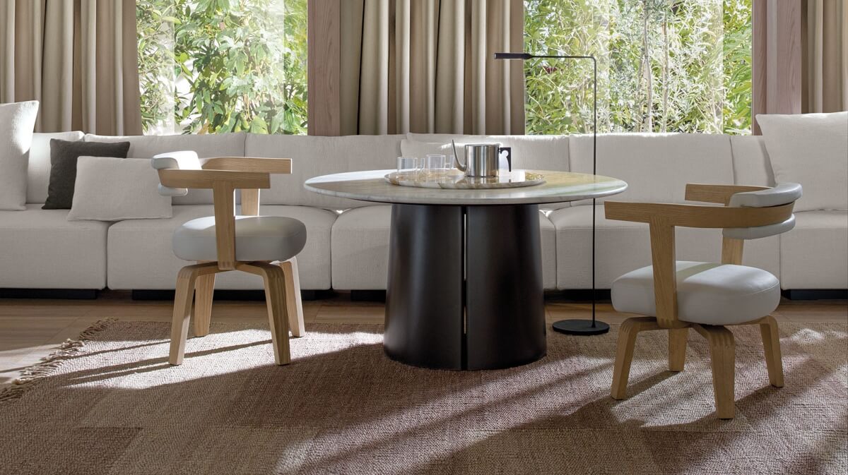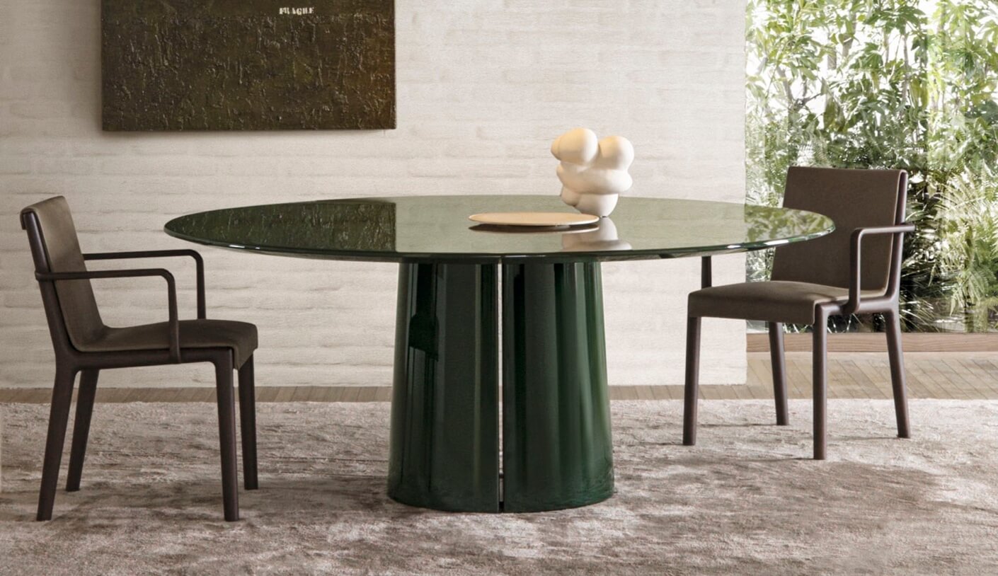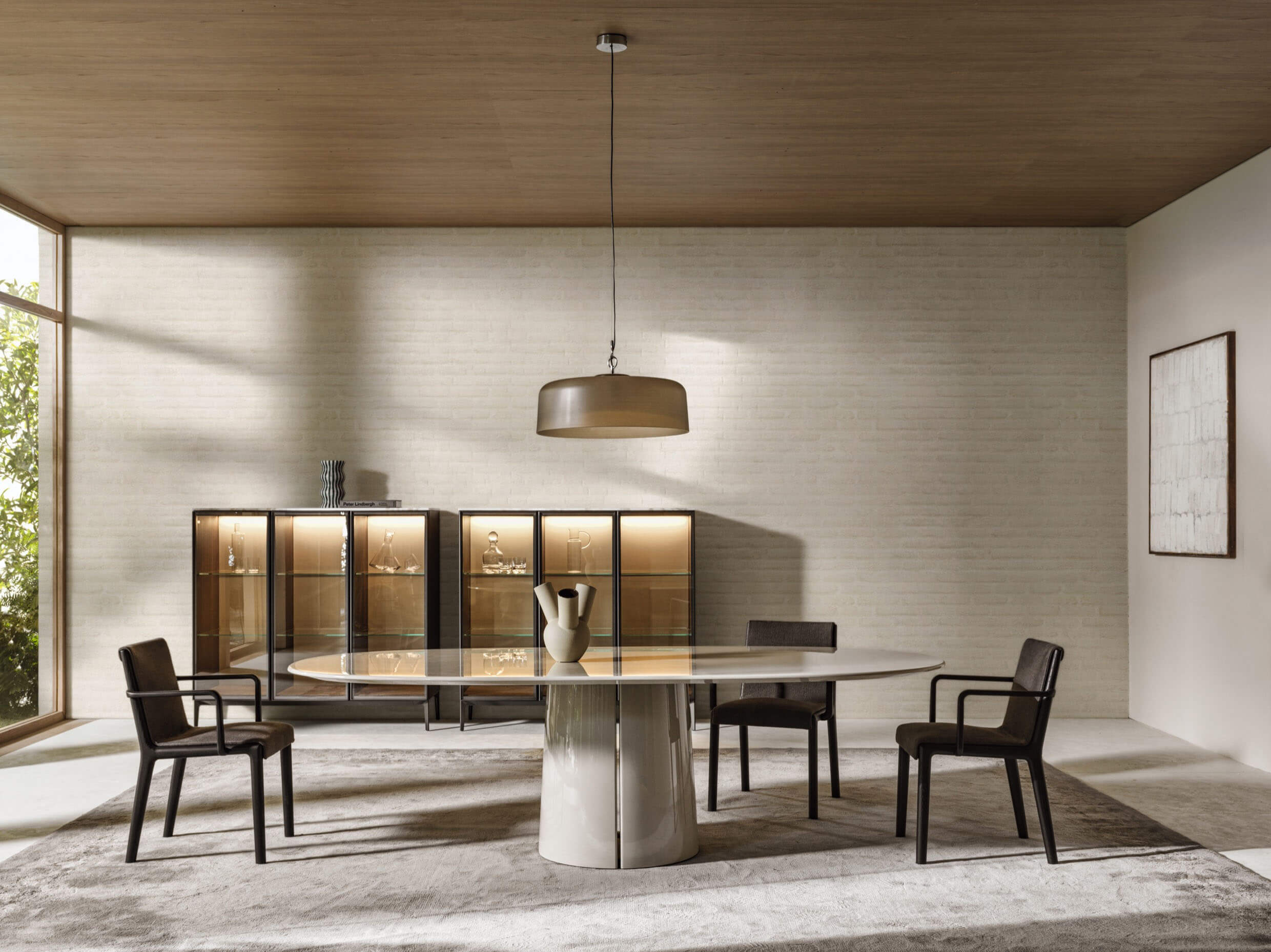 다이닝 테이블은 직경 140~200cm 범위의 원형 상판과 220~250cm 범위의 타원형 옵션이 제공되며, 넓은 공간 및 대규모 모임을 위한 400cm 버전의 대형 사이즈도 선택 가능합니다. 디자이너의 건축 경험을 반영한 마테오의 구조는 래커 처리된 메탈 소재로 강화된 내부 프레임을 기반으로, 아름다운 디자인을 유지하면서도 완벽한 안정성을 보장합니다.