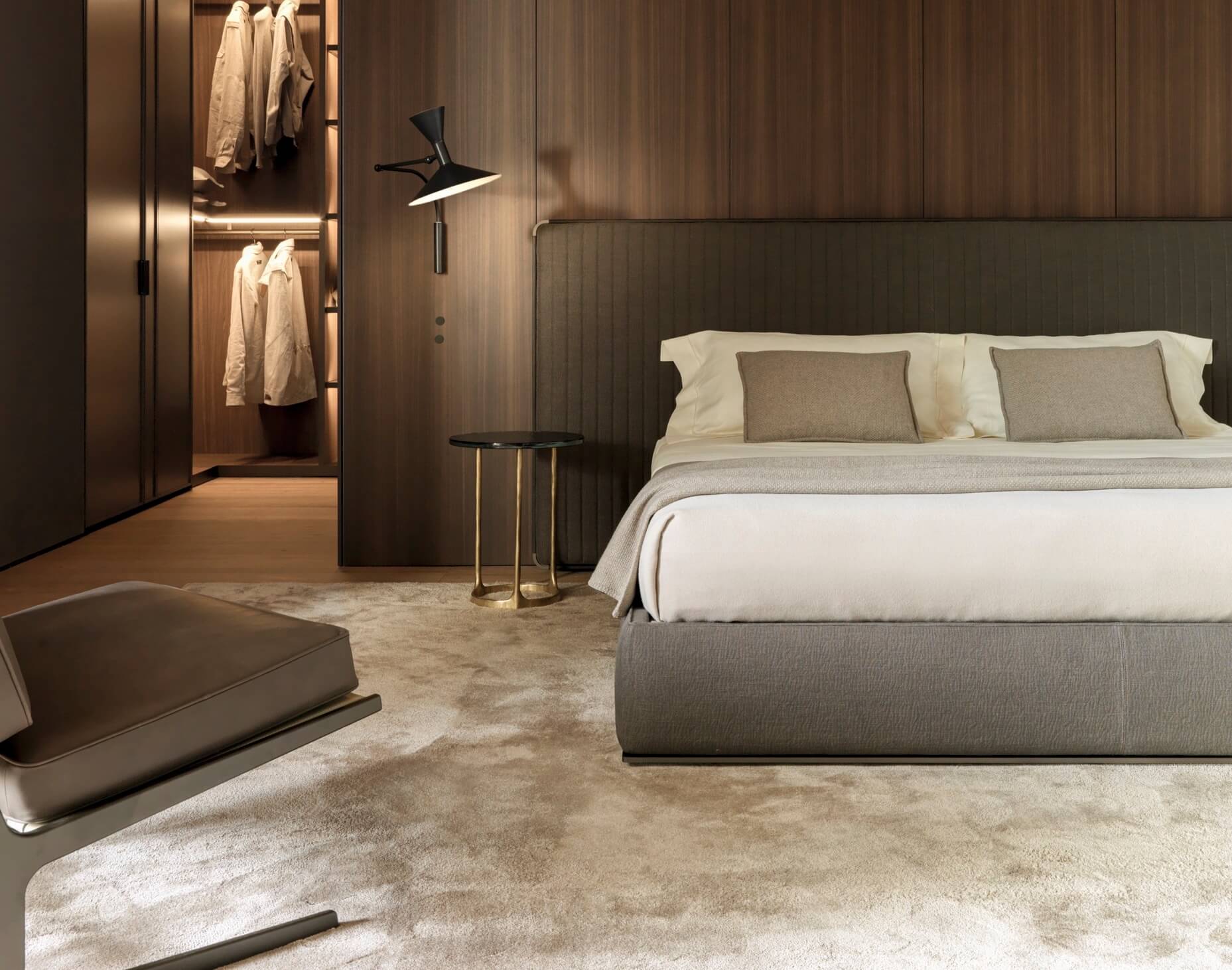 빈센트 반 두이센(Vincent Van Duysen)이 디자인한 오비디오(Ovidio) 침대는 침실의 중심입니다. 엄숙한 우아함과 최고의 편안함을 갖춘 놀라운 조합으로, 어떤 디테일도 놓치지 않았으며 헤드보드의 디자인이 독특한 제품입니다. 철저한 연구와 세련미가 결합된 헤드보드는 레더와 패브릭 옵션으로 출시되었습니다. 둥근 모서리로 차분한 느낌을 주는 스모크드 메탈 프레임이 구조를 부드럽게 잡아줍니다. 프레임 전면 부분은 가죽으로 덮여 있으며, 커버 색과 톤온톤으로 맞춰 절제된 미학을 선택하거나 대비되는 색상으로 맞춰 더 강렬한 미학을 선택할 수 있습니다.