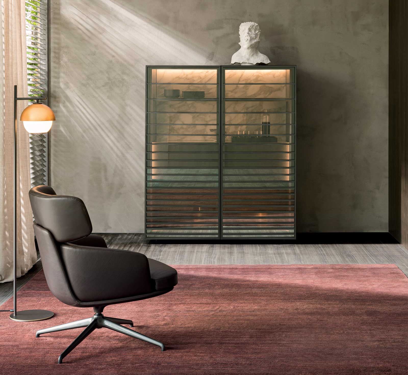 단테 보누첼리(Dante Bonuccelli)가 소중한 것들을 보관하는 동시에 전시할 수 있는 새로운 방식, 호라이즌(Horizon) 홈바를 제안합니다. 투명한 스톱솔 글라스와 내부 LED 조명은 두 개의 팁업 도어가 닫혀 있을 때도 내용물이 보이도록 해줍니다. 호라이즌의 측면을 따라 끝까지 열리는 도어 시스템으로 사용자는 내부 공간에 완전히 접근할 수 있습니다. 호라이즌 홈바는 도어를 통해 카멜레온처럼 변화합니다.