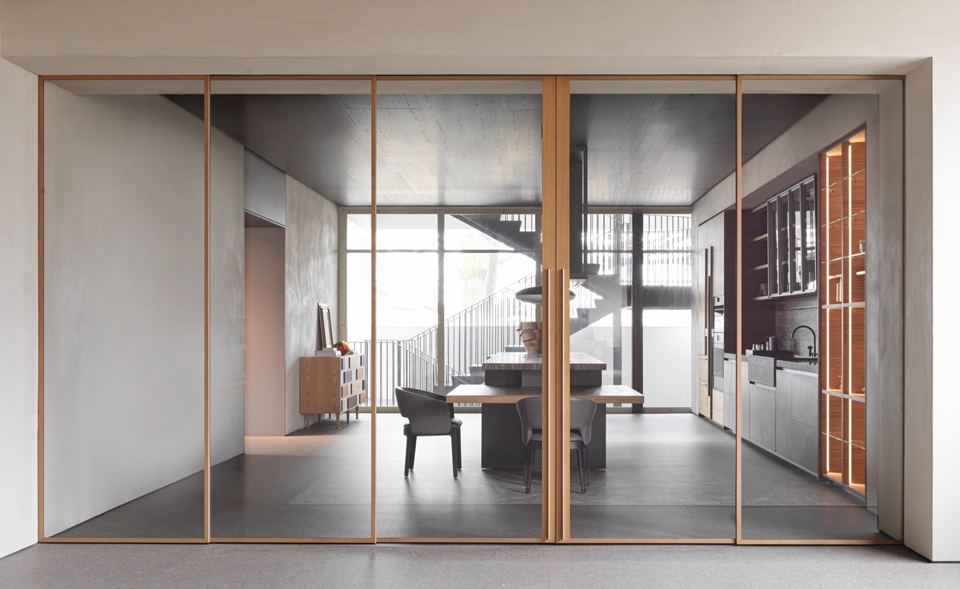 혁신의 정점인 싱크로(Sincro) 슬라이딩 도어는 몰테니앤씨 기술의 전문성과 우수성에 대한 헌신을 입증합니다.