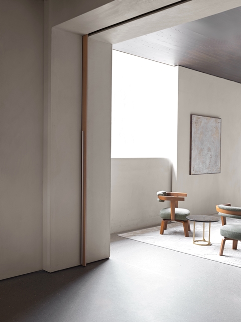 정밀한 기술력과 미니멀리스트 디자인을 모두 반영한 싱크로 도어는 주거 및 업무 환경에 아름답게 융합되어 현대 생활 공간과 작업 공간 사이의 경계를 모호하게 만듭니다. 정밀하게 설계된 알루미늄 프로파일과 투명한 유리 패널로 제작된 싱크로 도어는 강도와 섬세함의 완벽한 균형을 보여줍니다. 플로어 가이드 없이 완전한 서스펜션 상태로 설치되는 도어의 무중력 시스템은 실시간의 움직임을 부드럽고 편리하게 하는 동시에 안정성과 균일성을 보장합니다. 도어를 지지하는 상부 트랙은 고정 도어가 있는 천장 트랙과 고정 도어가 있는 매립형 트랙 또는 매립형 칸막이의 두 가지 버전으로 제공됩니다. 몰테니앤씨 컬렉션 전반에 사용되는 다른 독특한 소재와 완벽하게 조화를 이루는 우아한 맞춤형 싱크로 도어는 프로파일용 선라이즈 오크와 커피 오크, 메탈 마감용 퓨터 및 아이리스 옵션이 제공됩니다. 절제된 미적 감각과 완벽한 기능성을 갖춘 싱크로 슬라이딩 도어는 현대적인 세련미를 더해 모든 공간을 한층 더 돋보이게 합니다.