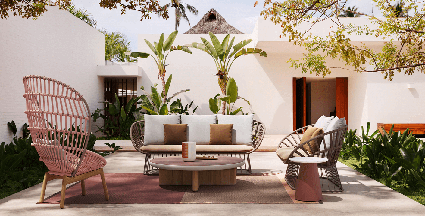 칼라(Cala)는 아이코닉한 엠마뉴엘로부터 영감을 받은 암체어로, 높은 등받이를 가지고 있습니다. 칼라 암체어는 투명하고 가벼운 표면과 함께 장엄한 공간적 존재감을 보입니다. 여유롭게 짜인 로프는 시각적 프라이버시를 위한 격자 모양의 효과를 보여줍니다. 칼라는 야외 식사공간은 물론, 라운지용 의자로도 사용할 수 있습니다. 다양한 메탈 코팅, 로프 색상, 쿠션 패브릭을 선택하여 각각의 목적에 맞게 암체어의 컨셉을 구상할 수 있습니다.